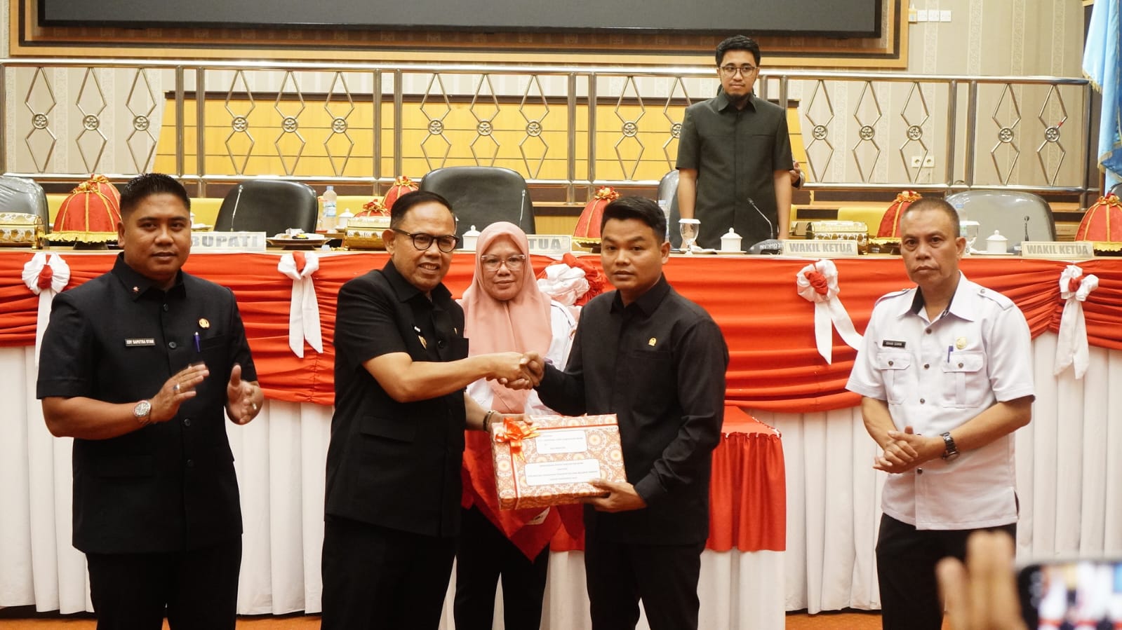Dalam rapat, Wakil Bupati Bone menyerahkan Rancangan Peraturan Daerah (Ranperda) tentang Perubahan Anggaran Pendapatan dan Belanja Daerah (APBD) Kabupaten Bone Tahun Anggaran 2025 kepada Wakil Ketua I DPRD Bone, Muh. Asrullah.