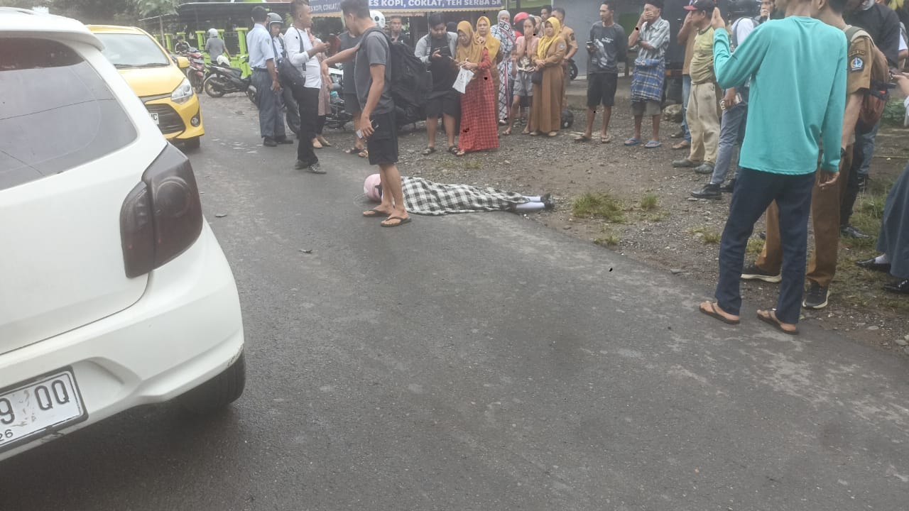 Namun nahas, motornya terlibat insiden dengan truk yang melintas hingga membuat korban terjatuh dan terlindas.