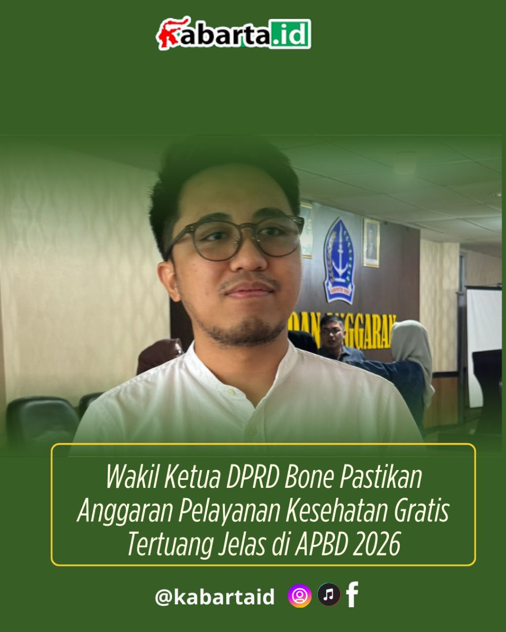 KABARTA.ID, BONE— Wakil Ketua DPRD Bone, Khairul Amran, memastikan bahwa anggaran untuk pelayanan kesehatan gratis melalui skema Universal Health Coverage (UHC) non cut off telah tertuang secara jelas dalam Rancangan Anggaran Pendapatan dan Belanja Daerah (APBD) Kabupaten Bone Tahun Anggaran 2026.