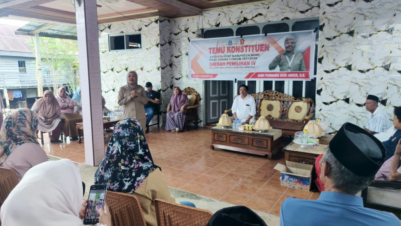 KABARTA.ID, BONE— Anggota DPRD Kabupaten Bone, Andi Purnama Sari Amier, SE., menggelar temu konstituen masa sidang I Tahun 2025/2026 di Desa Pallawarukka, Kecamatan Ulaweng, Selasa (9/12/2025).