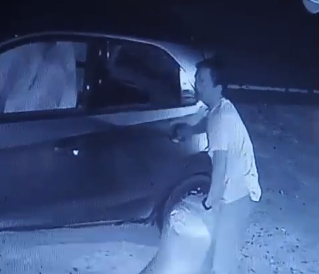 Dalam rekaman, pelaku terlihat menggunakan sebuah mobil jenis Honda Brio saat melancarkan aksinya.