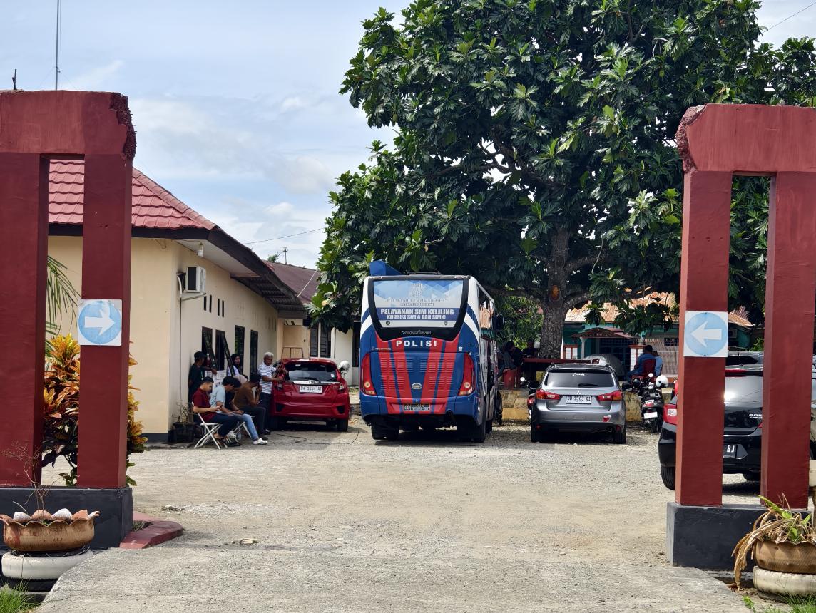 Satuan Penyelenggara Admnistrasi Surat Izin Mengemudi (SIM) Satlantas Polres Bone mendatangi Mapolsek Ulaweng Kecamatan Ulaweng, Bone, Rabu (11/2/2026). Mobil pelayanan khusus SIM A dan C ini terpantau terparkir di halaman Mapolsek Ulaweng.