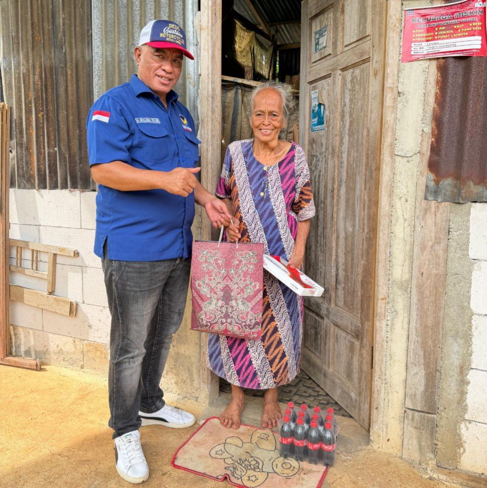 H. Muslimin menyambangi sejumlah warga untuk berbagi kebahagia. Ia menyerahkan bantuan secara langsung kepada masyarakat sebagai upaya meringankan beban ekonomi, khususnya menjelang Hari Raya Idulfitri.