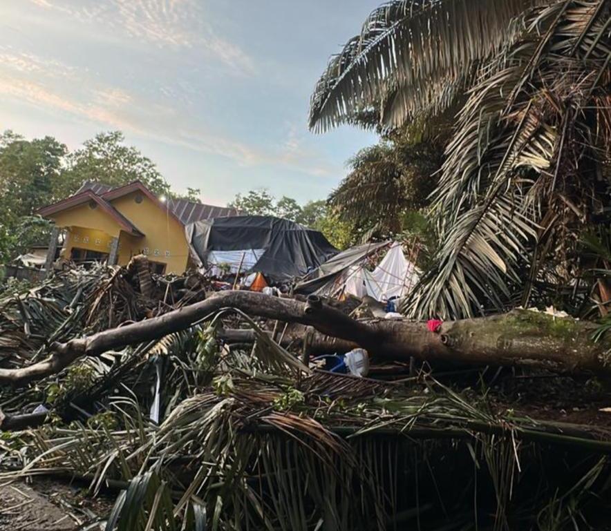 Pohon yang tiba-tiba tumbang menghantam lokasi hajatan dan menyebabkan kepanikan di antara para tamu undangan.