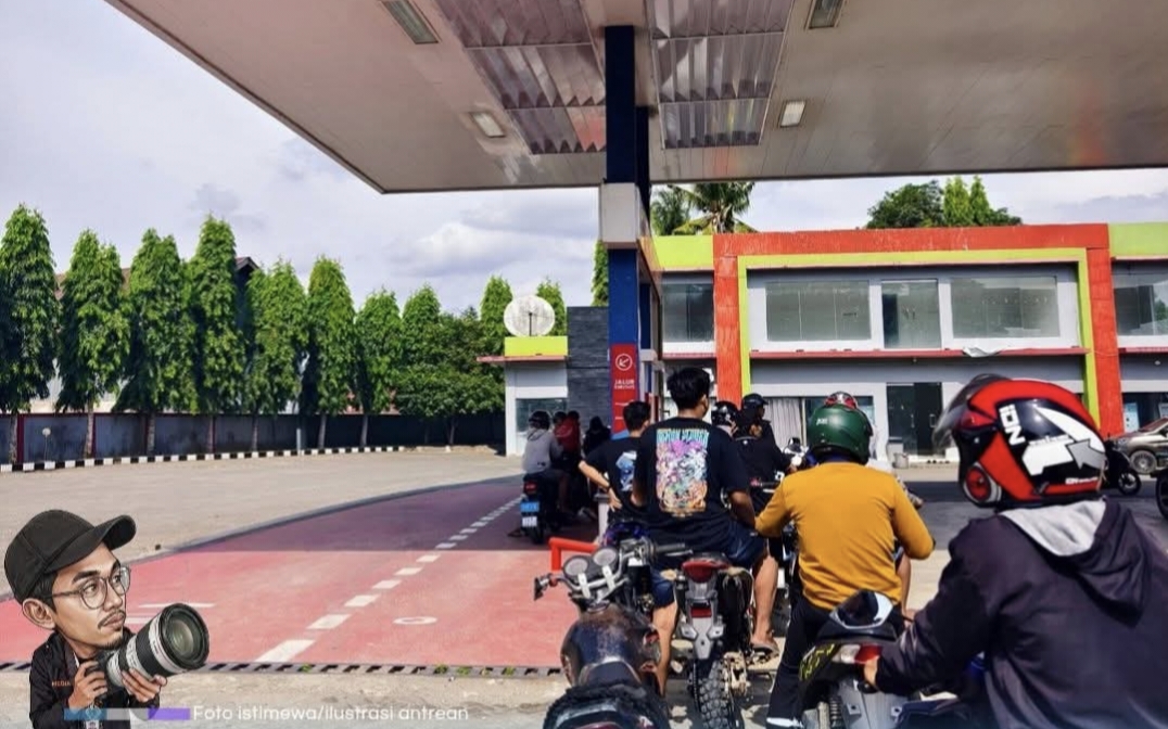 Pantauan media pada Senin siang (13/4/2026), pengisian BBM di jalur kendaraan roda dua BBM jenis pertalite terpantau antrean sudah normal seperti biasanya. Pengisian BBM pun berjalan lancar seperti biasanya.