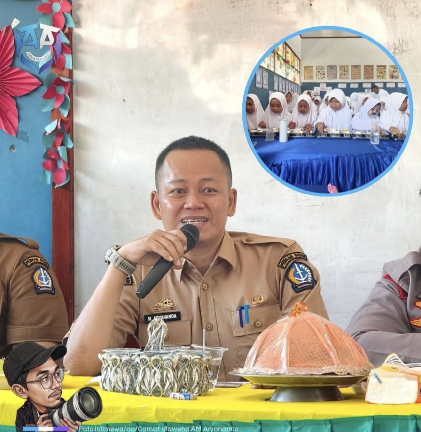 Camat Ulaweng AM Aryananda menyampaikan pesan kepada murid penerima program Makan Bergizi Gratis (MBG) perdana agar menabung uang jajan. Sebab kini, pemerintah telah menyiapkan bekal MBG untuk para murid.