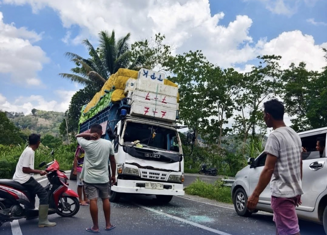 Lakalantas Truk Mundur di Sumpallabbu, Kendaraan Antre Lewat