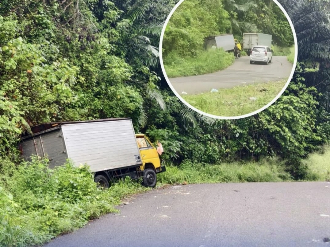Lakalantas mobil box gagal nanjak kembali terjadi di ruas jalan Bypass Sumpallabbu atau jelloe, Sabtu (26/4/2026). Hingga pagi ini Ahad pagi (27/4/2026) mobil box masih di TKP.