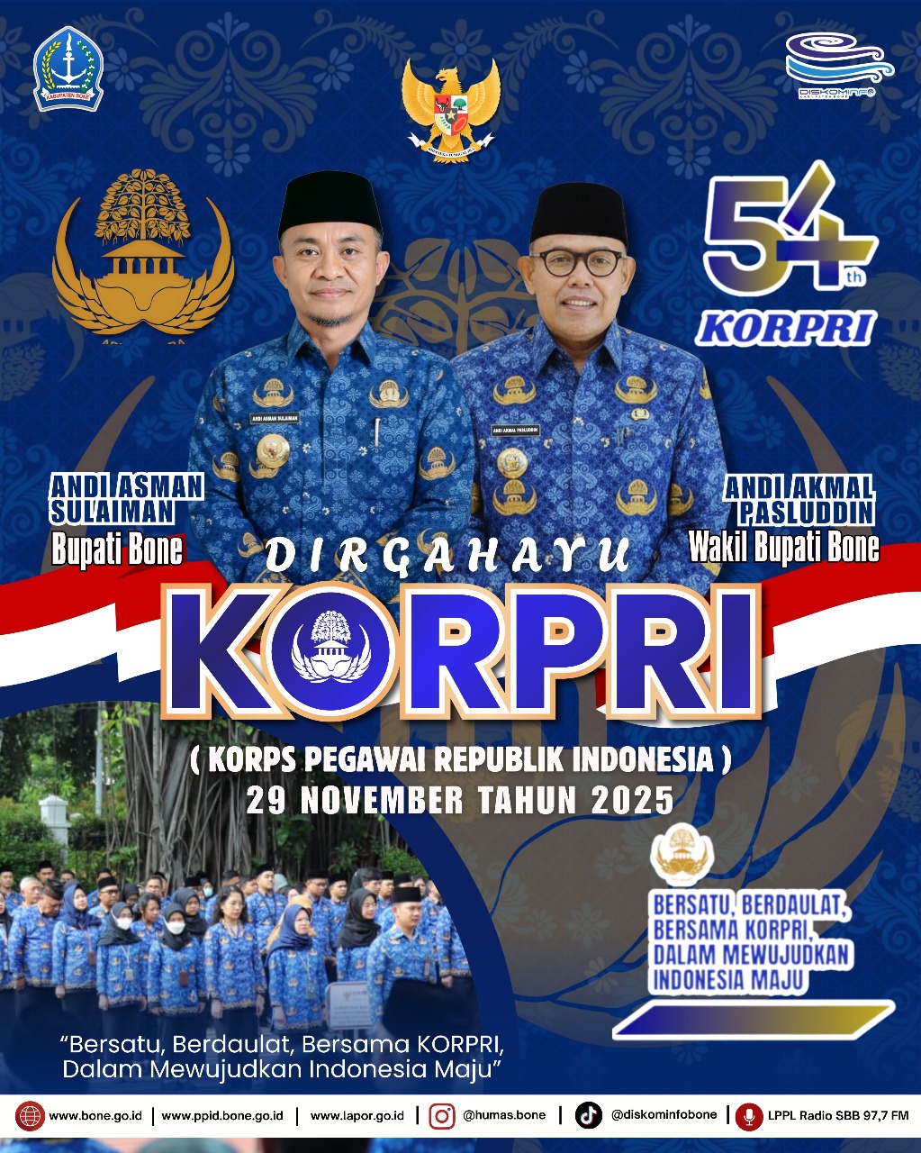 KABARTA.ID, BONE — Wakil Bupati Bone, Dr. H. Andi Akmal Pasluddin, SP., M.M., bertindak sebagai Inspektur Upacara pada peringatan Hari Ulang Tahun (HUT) ke-54 Korps Pegawai Republik Indonesia (Korpri) Tahun 2025.
